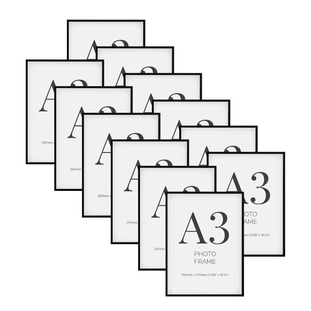 Pack of 12 A3 Black Aluminium Certificate Poster Frame with Plexiglass Front For Portrait And Landscape Wall Hanging