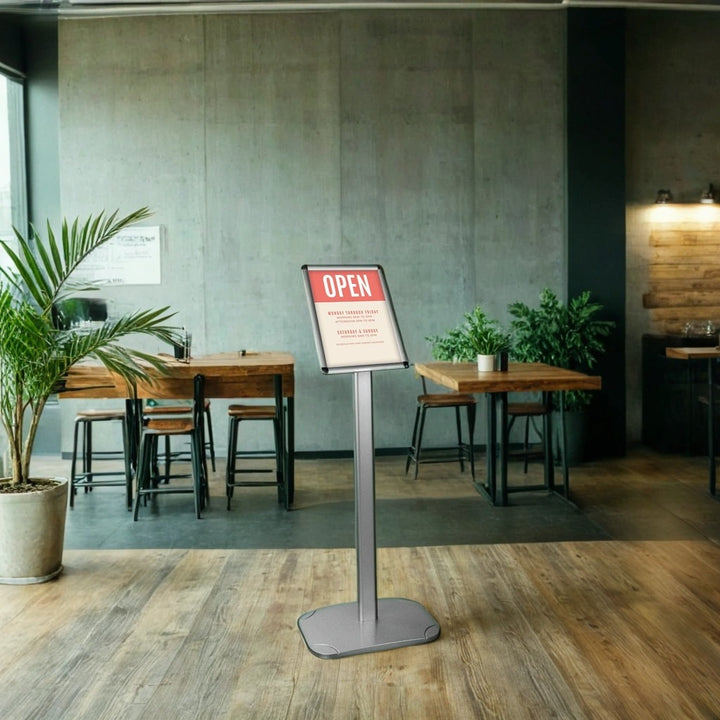 Designed by Displaysense to give businesses flexibility, this A4 freestanding poster stand lets you switch between portrait and landscape in seconds. With an adjustable angle and sturdy base, it’s ideal for presenting menus, notices and promotions at eye level in any professional setting.