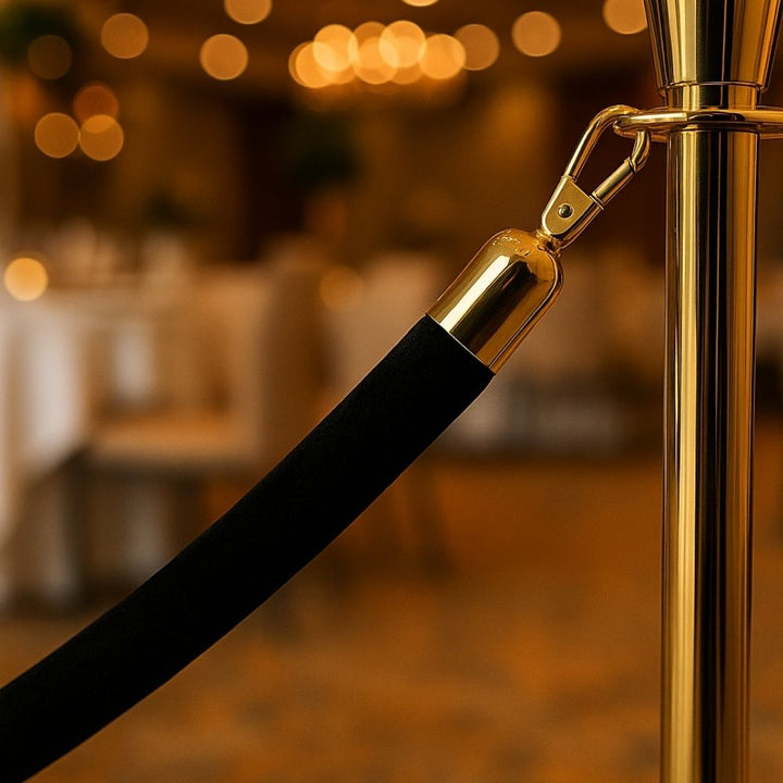 Why This Black Velour Rope with Brass Ends Is a Premium Crowd Control Solution