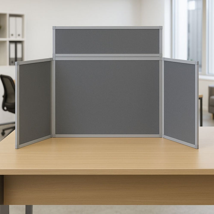 Grey 4-Panel Countertop Fold-Up Display Board Screen - 1800mm x 850mm