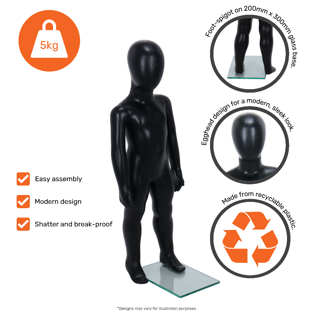 Matt Black Unisex Child Egghead Mannequin in Standing Pose - 1 To 2 Years