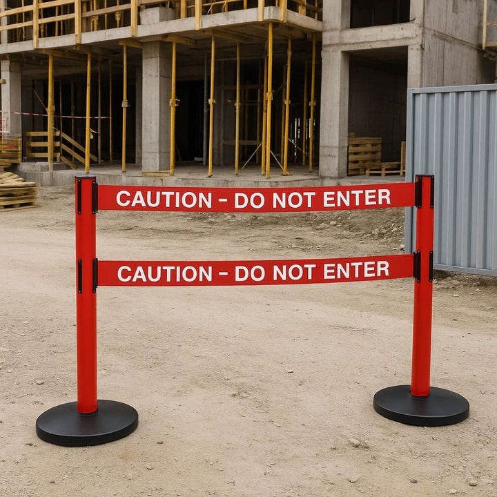 Enhance crowd control and site safety with this Twin Belt Red Outdoor Safety Retractable Barrier, designed with two high-visibility 3.4m belts clearly printed with ‘Caution Do Not Enter’. Engineered for demanding outdoor environments, it features a robust powder-coated steel post, a concrete-filled galvanised base, and weather-resistant materials. With smooth, slow belt retraction and a universal locking belt end, this barrier combines functionality with safety assurance.