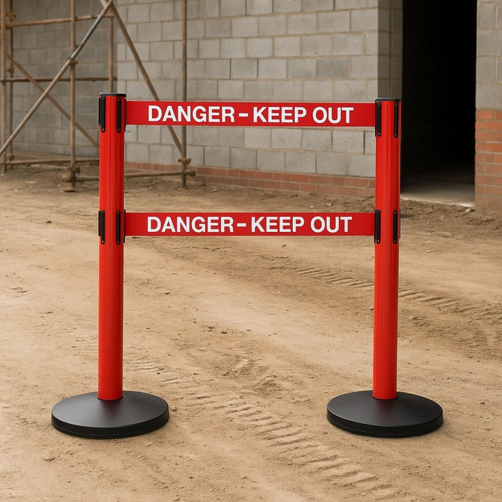 Red Outdoor Safety Retractable Barrier - Twin 3.4m 'Danger Keep Out' Belt